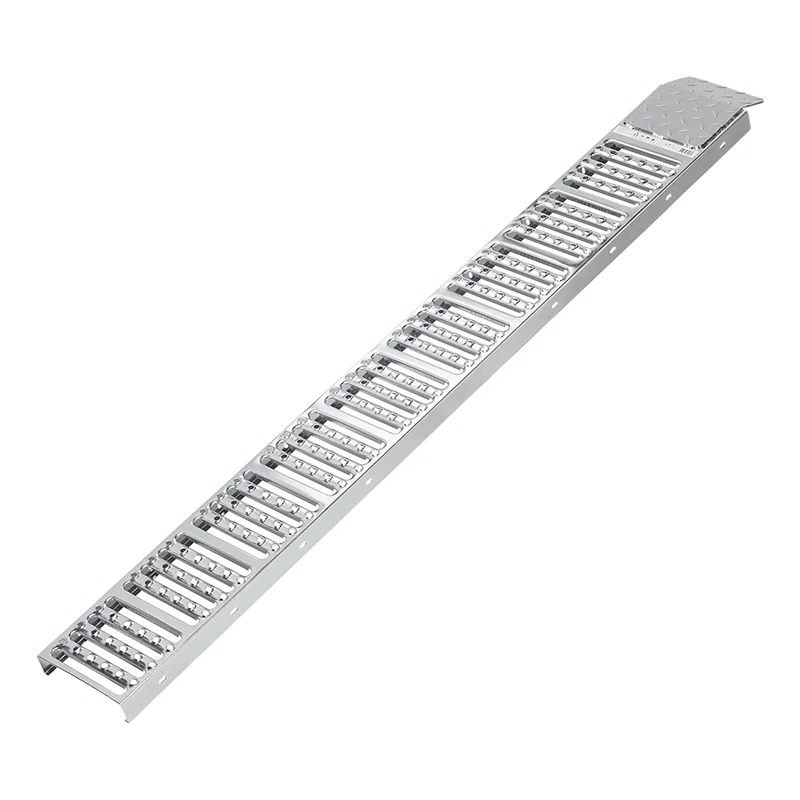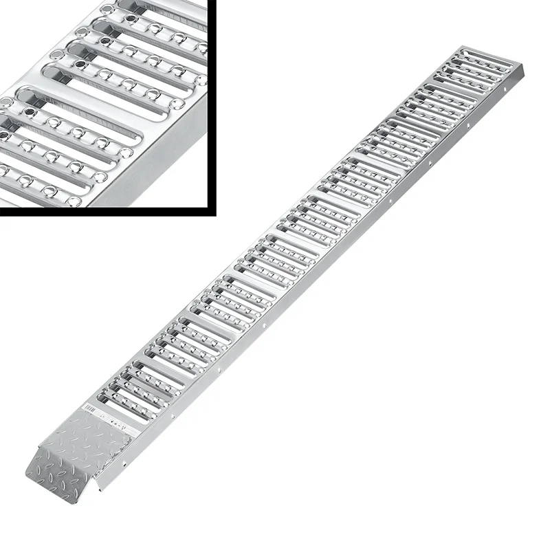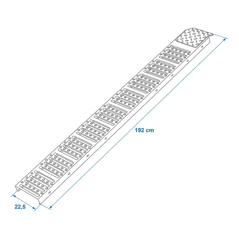 Tämä teräsramppi kestää jopa 225 kg per kappale, mikä takaa turvallisuuden, kun lastaat ruohonleikkureita ja pienempiä moottoreita sisään ja ulos autotalleista tai pakettiautoista. Rei'itetty pinta varmistaa paremman pidon lastauksen aikana, myös märissä olosuhteissa. Mitat 180 x 26 cm sopivat useimpiin ajoneuvoihin ja tarjoavat sopivan kallistuksen jopa 480 mm korkeuteen.