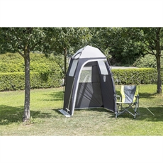 Tämä vankka keittiö- ja säilytysteltta tarjoaa käytännöllisen tukikohdan ruoanlaittoon ja säilytykseen leirintämatkalla. PVC-päällystetystä polyesteristä ja vakaista 19 mm terästangoista koostuva teltta seisoo tukevasti kaikissa sääolosuhteissa. Suuri 185 x 85 cm rullaovi takaa helpon pääsyn, kun taas hyttysverkolliset ikkunat tarjoavat hyvän ilmanvaihdon ilman hyönteisiä.