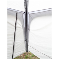 Paviljongissa on 4 sivuseinää: 2 x hyttysverkolla, 1 x suljettu, 1x vetoketjuovella.