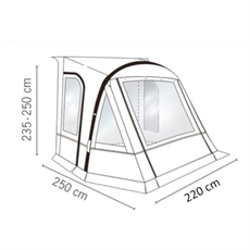 REIMO One Beam Air 220 / 260 / 325 on kevyt etuteltta, joka on helppo käsitellä. Etuteltan voi pystyttää nopeasti innovatiivisen ilmanvaihtotekniikan ansiosta. Kaikki, mitä tarvitaan, on mukana tuleva pumppu. Sivuseinät ovilla tarjoavat helpon pääsyn sisään ja ulos, ja kaikissa ikkunoissa on verhot optimaalisen yksityisyyden takaamiseksi. Jos etsit monikäyttöistä telttaa erityisesti matkakäyttöön, One Beam Air on varma sijoitus.