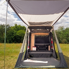 REIMO TRAPEZ PREMIUMilla voit merkittävästi laajentaa pakettiautosi asuinpinta-alaa. Yksityiskohdat, kuten ylimääräinen ilmanvaihto, sävytetyt sivuikkunat ja mahdollisuus käyttää sisäänkäyntiovea markiisinä, tarjoavat joustavuutta. Ommeltu lattia kiinnitetään puskuriin tarranauhalla, ja kattoluukkua voi käyttää kattoikkunana saadakseen lisää valoa ja tuuletusta.