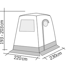 Valmistettu kestävästä 190T polyesteristä, tilava koko L:220 x S:230 x K:193-203 cm. Kompakti pakkaus koko 95 x 20 x 22 cm tekee kuljetuksesta ja säilytyksestä helppoa. Kattoikkuna ja oven ikkuna takaavat hyvän luonnonvalon, kun taas harmaa väri sopii useimpiin pakettiautoihin.