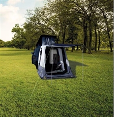 Integroitu hyttysverkko etu- ja sivuseinissä pitää hyönteiset loitolla, ja teltan yläosan ilmanvaihto varmistaa raikkaan ilman. Kevyt rakenne ja universaali kiinnitys auton takaosan kautta tekevät teltasta ihanteellisen spontaaniin pysähdykseen tai pidemmälle matkalle.