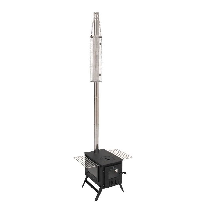 • Sisältää:1 kpl telttatakka jaloilla, 8 kpl savupiipun osia, 1 kpl kipinäsuoja, 2 kpl sivuosia (kuivaustelineet), 1 kpl putkensuoja, polyesterinen kuljetuslaukku EPE-vaahdolla