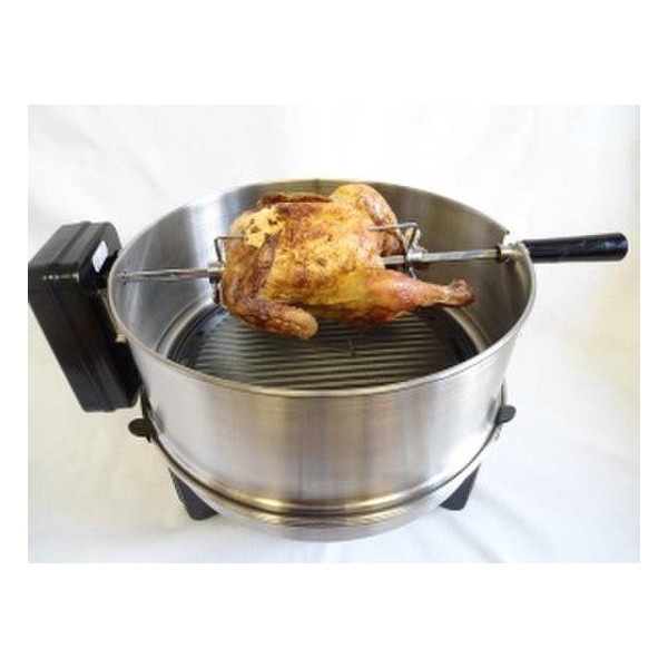 Smart rotisserie-setti osoitteesta SAFIRE. Tällä setillä voit valmistaa paistettua lihaa ja esimerkiksi maissinpoikasia ilman, että ruoka joutuu suoraan kosketuksiin lautasen kanssa. Pyörivä grilli pyörii varmistaen, että lämpö jakautuu tasaisesti grillattavaan ruokaan.