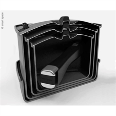 Käytännöllinen, neliskulmainen alumiinisetti, jossa on yhteensopiva ruostumattomasta teräksestä valmistettu kansi. Erittäin tilaa säästävä.