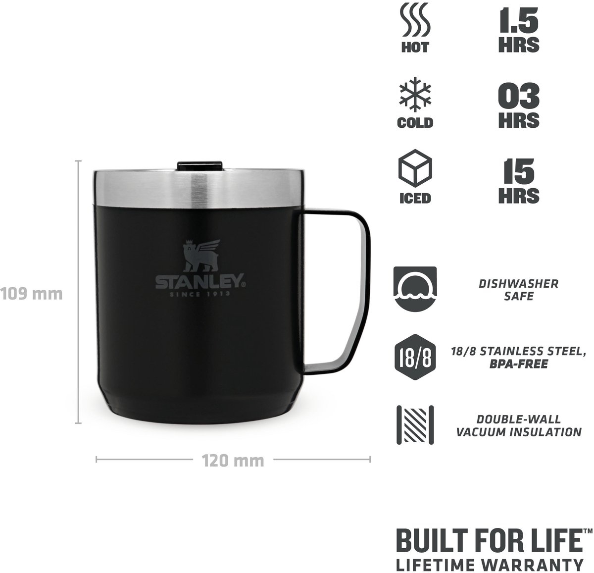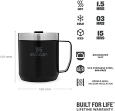 Stanley on vuodesta 1913 lähtien valmistanut kestävää ulkoiluvarustusta seikkailunhaluisille sieluille. Muki sopii suoraan kahvinkeittimesi alle kotona, joten voit täyttää sen ja lähteä ilman lisäsiirtelyä. Ergonominen kahva tarjoaa paremman otteen, myös silloin kun sormet ovat kylmät pitkän retken jälkeen. Löydä lisää termomukeja ulkoilma-aktiviteetteihisi valikoimastamme.