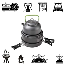 Tämä täydellinen kattilasarja tarjoaa kaiken tarvittavan sekä päivittäiseen ruoanlaittoon kotona että retkeilymatkoille. Sarja kuljetetaan helposti kantolaukussa karabiinilla, jolloin kaikki osat pysyvät yhdessä ja suojattuina. 2,0 litran kattilalla ja 0,8 litran vedenkeittimellä voit valmistaa ateriat kahdelle henkilölle, kun taas säädettävällä liekkisäätimellä varustettu kierrekokeilu tarjoaa joustavuutta ruoanlaitossa eri paikoissa.