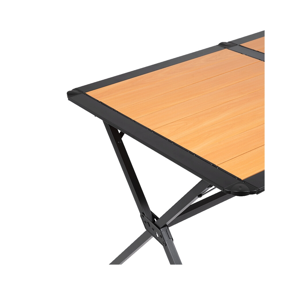 Pöytälevyssä on rullattava muotoilu puun ulkonäöllä, mikä tekee siitä kompaktin pakata. UV-kestävä pinnoite suojaa pintaa auringonvalolta kaudesta toiseen. Pöytä mitat ovat 110 x 72 cm ja tarjoaa tilaa 4 hengelle. Mukana oleva kantolaukku tekee kuljetuksesta yksinkertaista, ja taitettava muotoilu tarkoittaa, että pöytä voidaan helposti säilyttää autossa matkojen välillä.