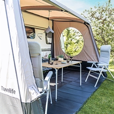 Travellife erikoistuu käytännöllisiin ratkaisuihin retkeilyelämään, jossa toiminnallisuus on keskeistä. Tällä sivuosalla saat tuuli- ja sadesuojan, joten tuulinen sää ei pilaa leirintämatkaasi. Ikkunat estävät klaustrofobisen tunteen, kun sinulla on silti suoja. Katso lisää retkeilyvarusteita aurinkopurje-kategoriastamme.