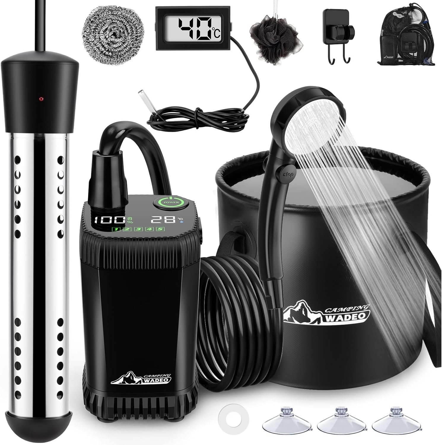 WADEO Kannettava Camping Suihku vedenlämmittimellä