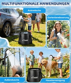 Tämä campingsuihku yhdistää upotuspumpun, hierontasuihkunpään, taitettavan 20 litran ämpärin ja vedenlämmittimen yhdeksi kompaktiksi ratkaisuksi. Automaattinen termostaatti sammuu 70 °C:ssa ja käynnistyy uudelleen 40 °C:ssa, joten saat lämmintä vettä ilman jatkuvaa valvontaa – ihanteellinen luonnossa leiriytyessäsi. Viidellä säädettävällä virtauksen tilalla saat hallinnan vedenkulutuksesta: tila 1 antaa 140 minuutin käyttöajan, kun tila 5 antaa 80 minuuttia.