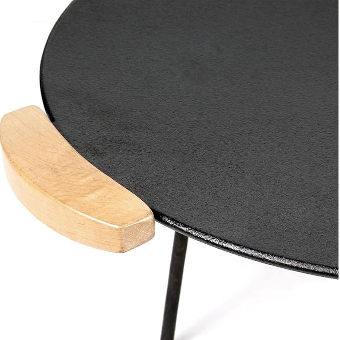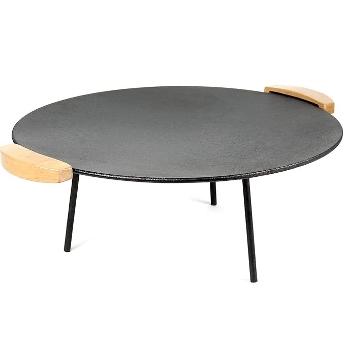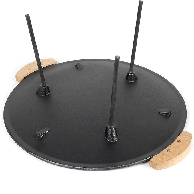 Tämä grillitaso on valmistettu massiivisesta valuraudasta, jonka paksuus on 4,2 mm, mikä takaa tasaisen lämmönjakautumisen koko pinnalla. Halkasijaltaan 44 cm voit valmistaa ruokaa useammalle henkilölle samaan aikaan – ihanteellinen grillijuhliin tai leirintäalueella illallisen valmistamiseen. Ergonomiset puukahvat pysyvät viileinä käytön aikana, joten voit siirtää tasoa turvallisesti. Kaksi jalustasarjaa tarjoavat korkeudensäätöä 20 cm tai 32 cm, jolloin voit sopeuttaa sen erilaisiin lämmönlähteisiin.