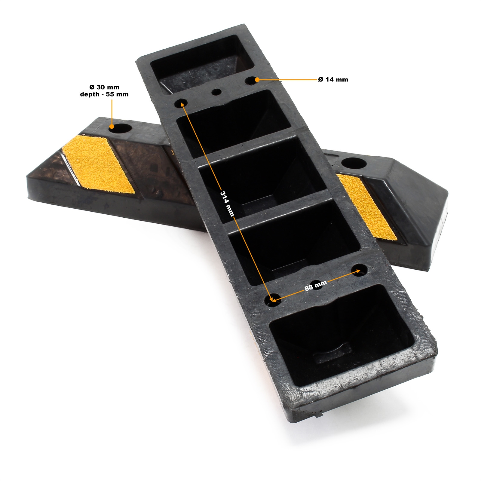 WILTEC tarjoaa käytännöllisiä turvaratkaisuja yrityksille ja yksityisille. Ebonittikumi kestää sääolosuhteita ja UV-säteilyä, mikä takaa pitkän käyttöiän ilman jatkuvaa vaihtotarvetta. Mitat sopivat useimpiin ajoneuvoihin, henkilöautoista pakettiautoihin. Kaksi kappaletta pakkauksessa riittää kattamaan yhden vakiopysäköintipaikan ilman lisäostoksia. Löydä lisää pysäköintiratkaisuja valikoimastamme varkaussuojia.