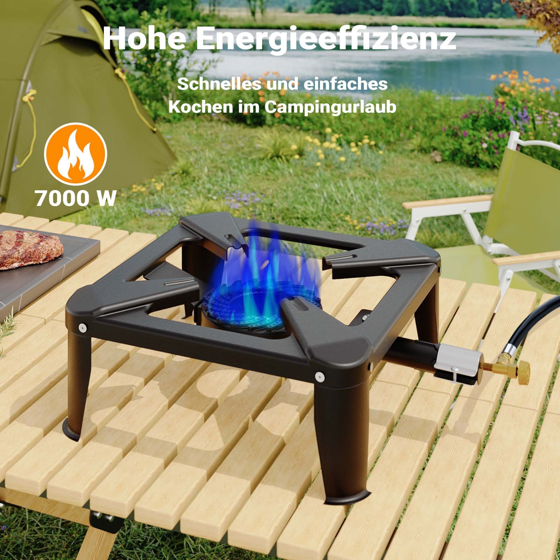 Tämä kaasuliesi tuottaa 7 kW tehoa, mikä tarkoittaa, että voit keittää vettä nopeasti ja valmistaa aterioita tehokkaasti, jopa retkillä, joissa aikaa on rajallisesti. Vain 3,6 kg painoisena sitä on helppo kuljettaa teltassa tai vaelluksilla ilman tarpeetonta kuormitusta varusteillesi. Kaasun kulutus 450 g/h antaa pidemmän käyttöajan täyttöjen välillä, jolloin voit keskittyä retkeen sen sijaan, että huolehtisit kaasun loppumisesta.